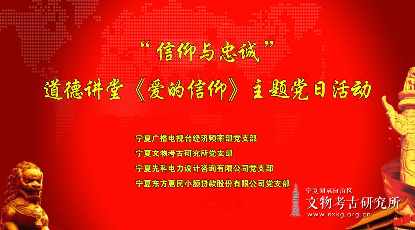 - 2020-09-30 宁夏文物考古研究所党支部召开“信仰与忠诚”——道德讲堂《爱的信仰》联合主题党日活动